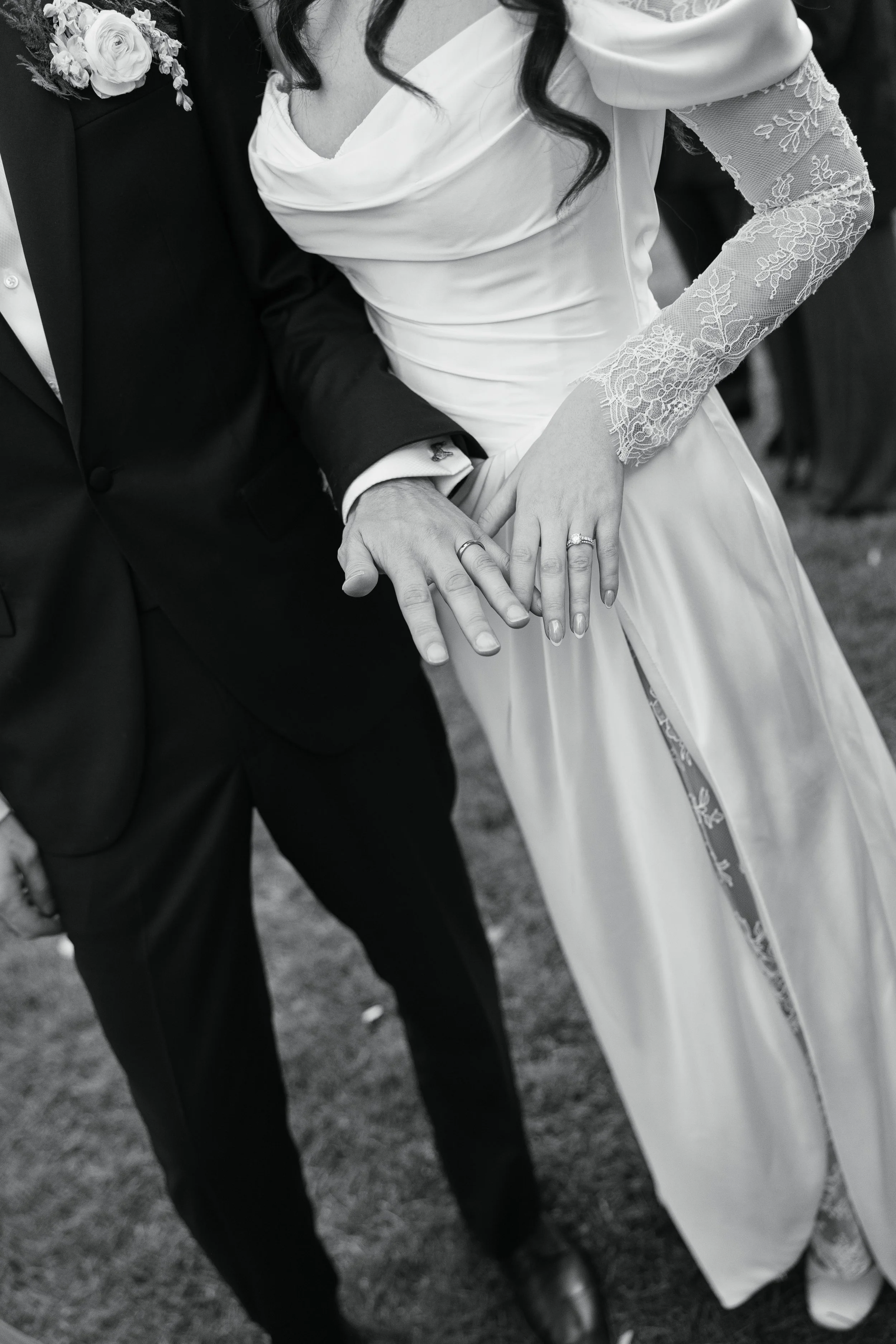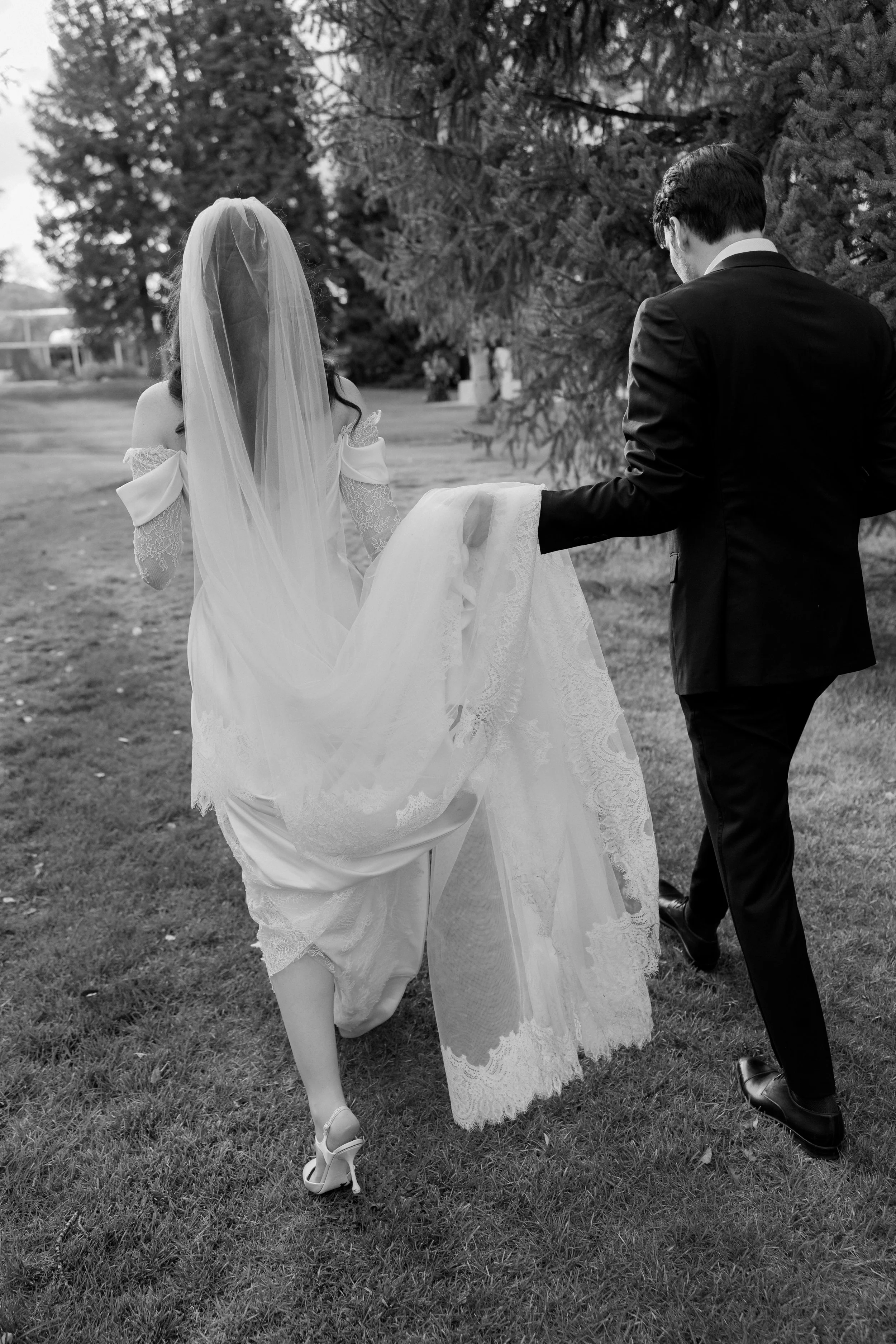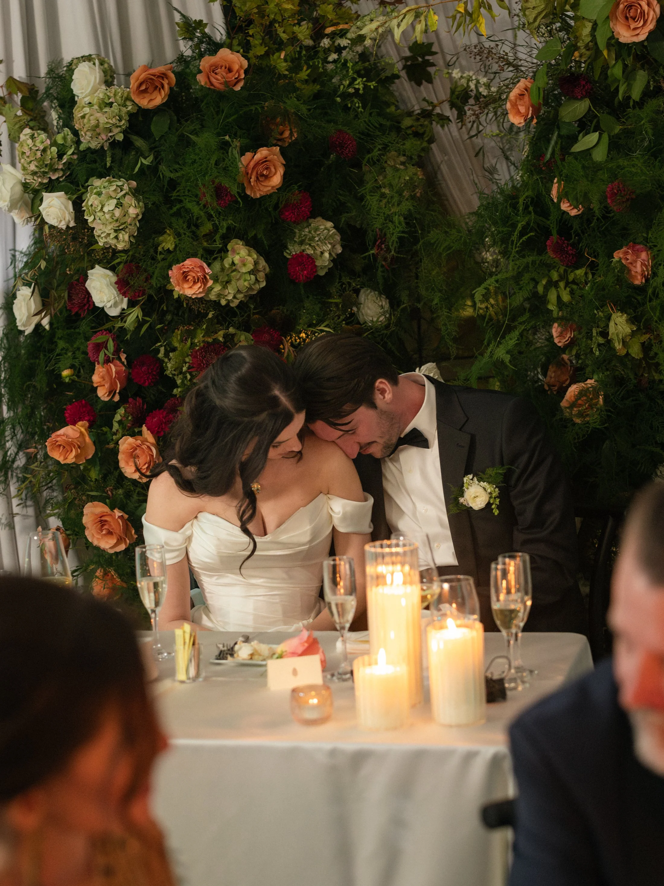 As the night unfolded, the energy shifted. The floral arch behind Alice and Tommy became the perfect backdrop for heartfelt toasts, while a sleek black DJ booth lined with autumn blooms set the stage for what came next. Once the music started, the pavilion turned into a full-on disco paradise—checkered floors, shimmering lights, and a dance floor that stayed packed straight through to midnight.
